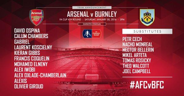 نشر حساب ارسنال الرسمي على موقع تويتر تشكيل الفريق الذي سيواجه بيرنلي